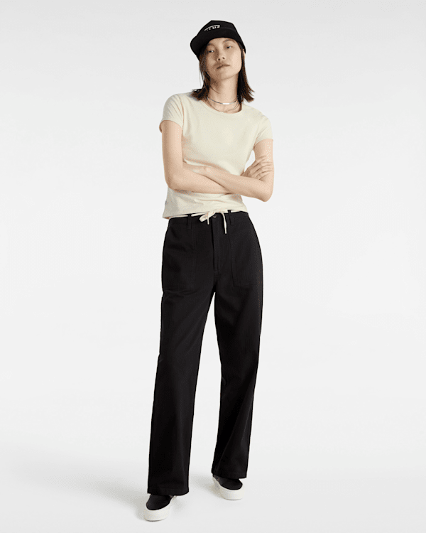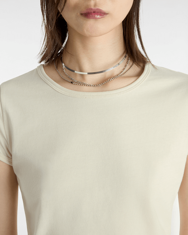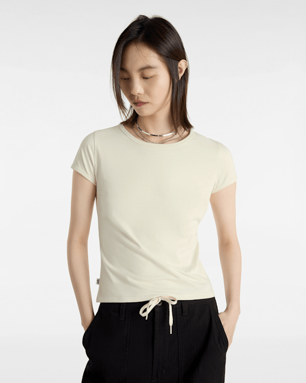 100% cotton jersey fabric knit Fitted short sleeve baby tee Tonal skateboard embroidery patch at back of neck Flag label at side seam and interior woven label