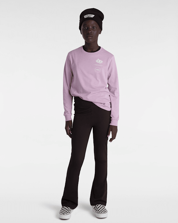 The Kids Elevated Leggings have a slightly flared leg and a Vans® logo screen print on the left leg.