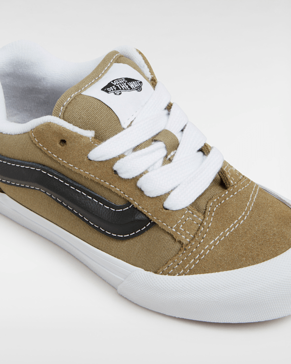 With its in-your-face profile and dramatic style details, the Kids Knu Skool plays off of the original Old Skool while blending an icon of the past with today’s trends.