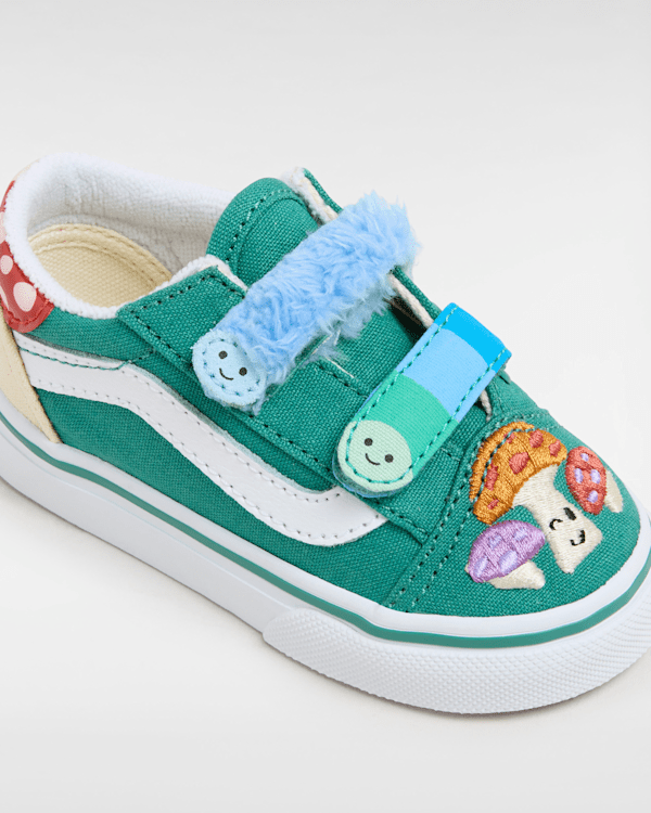 Strap Closures Create a Toddler-Friendly Fit on these Iconic Sidestripe Shoes The Toddler Old Skool Hook And Loop Shoes reimagine our iconic Sidestripe shoe by swapping traditional laces for double hook-and-loop closures.