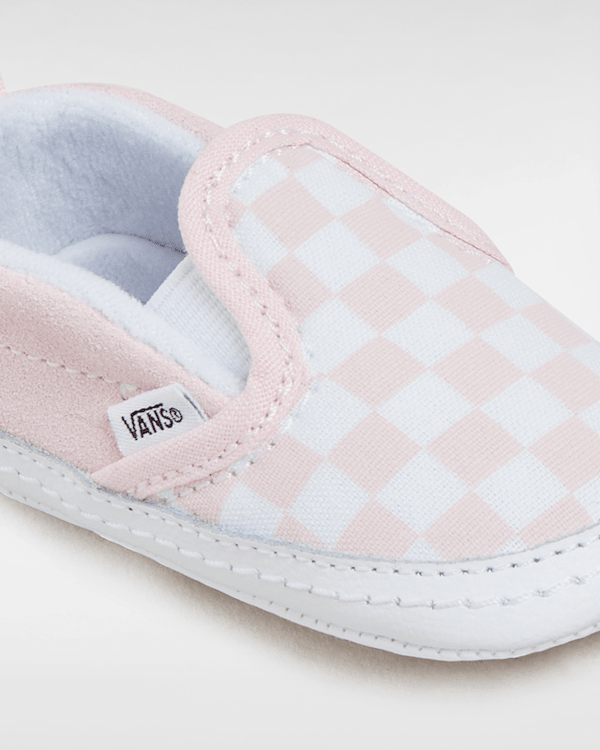 Redesigned for a perfect fit in the style of the original Classic Slip-On, the Infant Slip-On V Crib Checkerboard has been constructed especially for our littlest ones with side hook-and-loop closures, heel pulls, and elastic accents for easy on-and-off access.