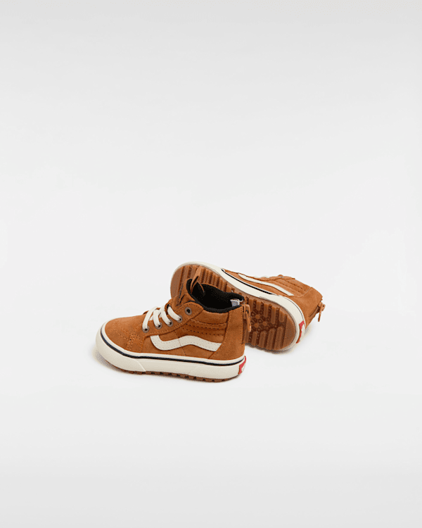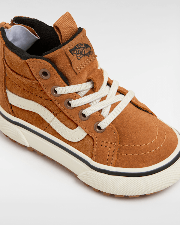 The Sk8-Hi is an all-time Vans classic, but the Toddler MTE Sk8-Hi Zip Shoes are built for adventure with a water-repellant suede upper, a Primaloft insulation package, and an outsole designed for increased traction.