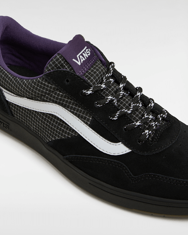Heritage Sidestripe™ silhouette Suede and ripstop textile uppers Lace-up closure Simplified tongue logo label and heel embroidery Supportive padded collars Cold cement cupsole