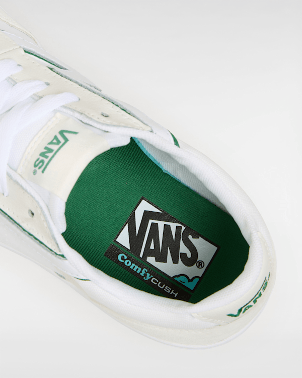 A Standout “Flying V” Logo Brands this Comfy 80s-Inspired Shoe The Lowland ComfyCush is an archival 80s Vans silhouette with a slim profile and a cloud-like footbed and outsole unit for modernized comfort.