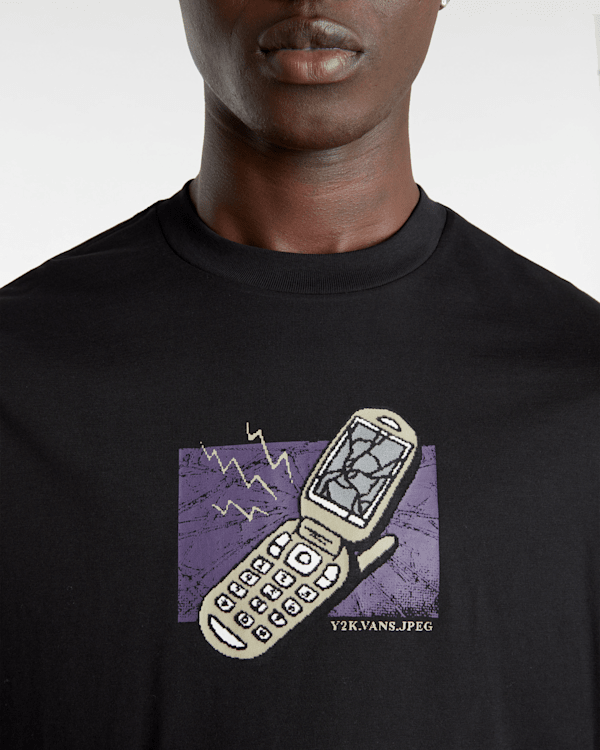 The Vans Take The Call T-Shirt has a crew neck, short sleeves and phone imagery on the front.