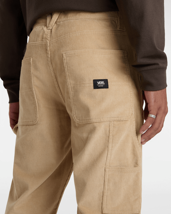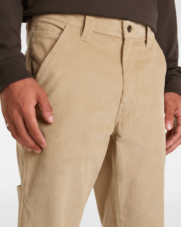 100% Cotton fabric 14 wale corduroy fabrication Traditional carpenter style details Front slash hand pockets with coin pocket Rear patch pockets Hammer loop and tool pocket 'V' belt loop detail on back waistband Flag label for added branding when cuffed Relaxed fit 43,2 cm leg opening