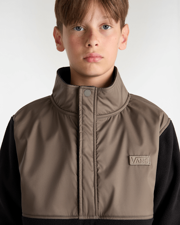 It has a half zip, welt hand pockets and a direct embroidery Vans® logo on the left chest that ties the look together.