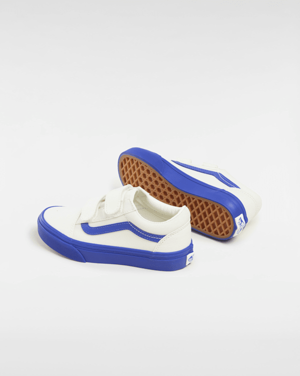 Strap Closures Create a Kid-Friendly Fit on this Iconic Sidestripe Shoe The Kids Old Skool Hook and Loop Shoes reimagine our iconic Sidestripe shoe by swapping traditional laces for double hook-and-loop closures.