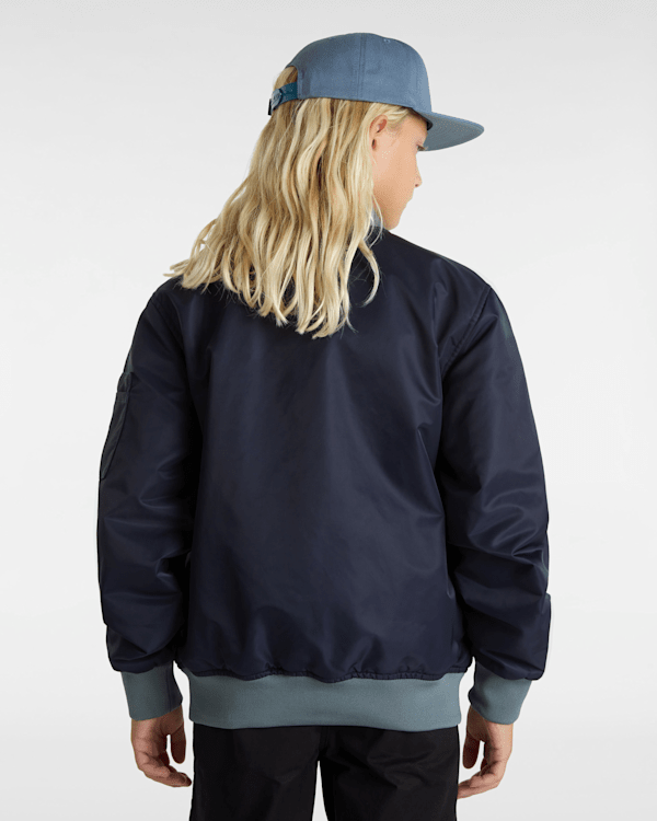 With its multiple pockets and soft ribbed cuffs, hem and collar, this jacket blends practical features and iconic style details, all finished off with a woven Vans patch logo on the left hem.
