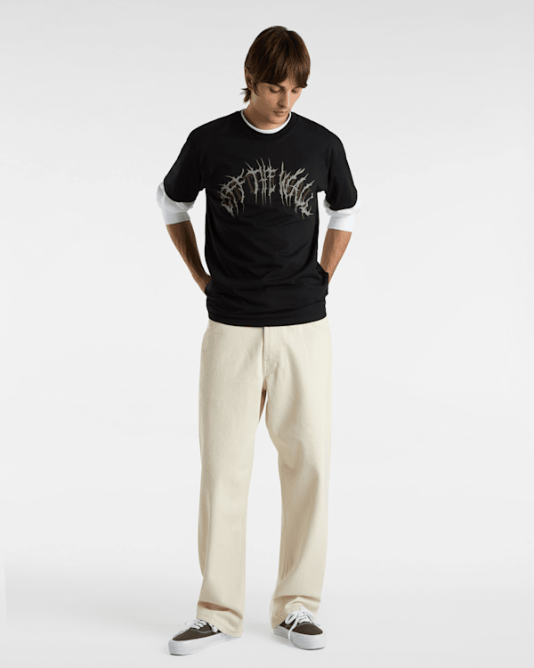 Headbang with the best of 'em in the Metal Arch T-Shirt, a classic fit short sleeve crew neck T-shirt with a screenprinted graphic of a heavy metal version of the classic Vans® "Off the Wall" signature.