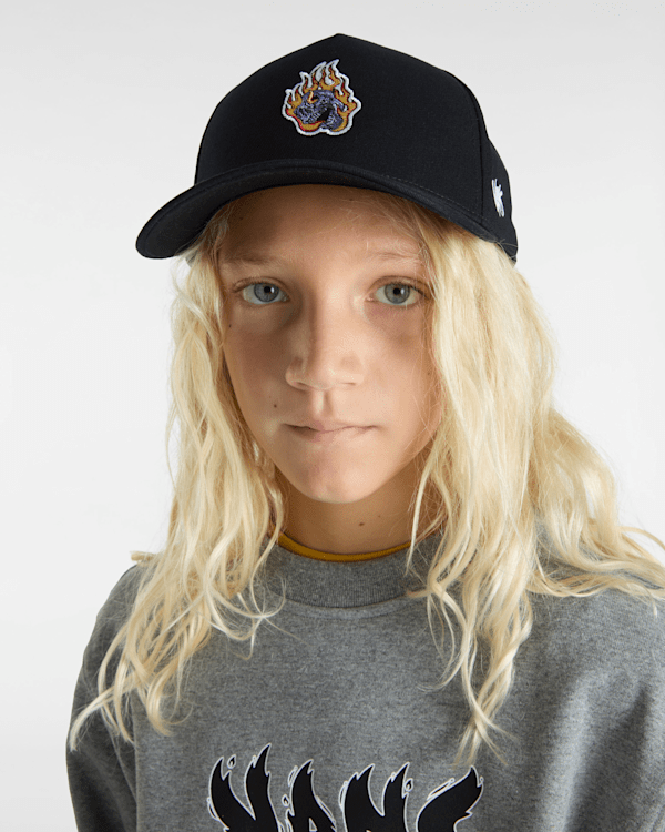 With a breathable cotton shell, it's finished with a bold merrow edge patch featuring a flaming skull, and an embroidered graffiti-style Vans® logo at the side.