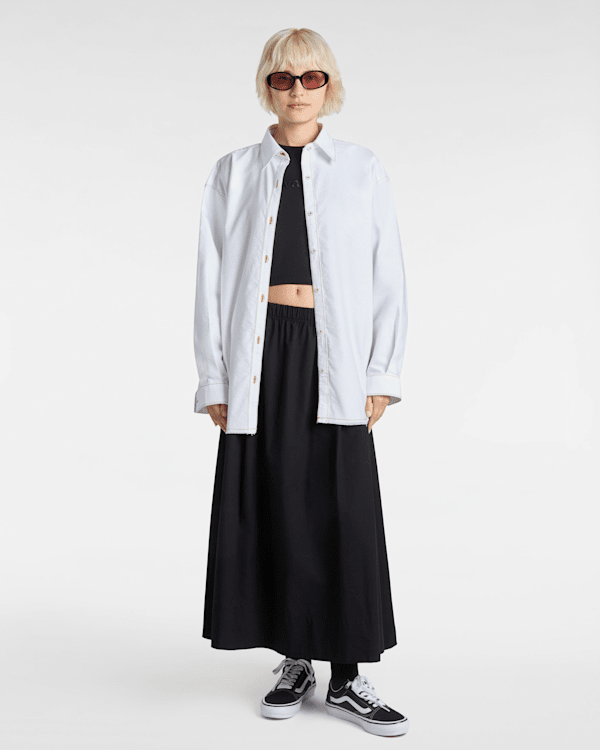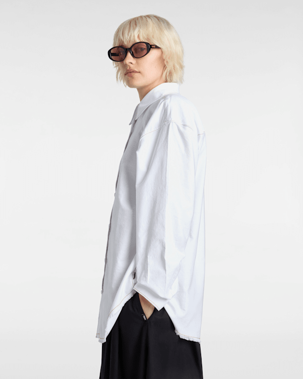The Vans® version features a raw hem and contrast top stitching, all in a roomy, oversized fit