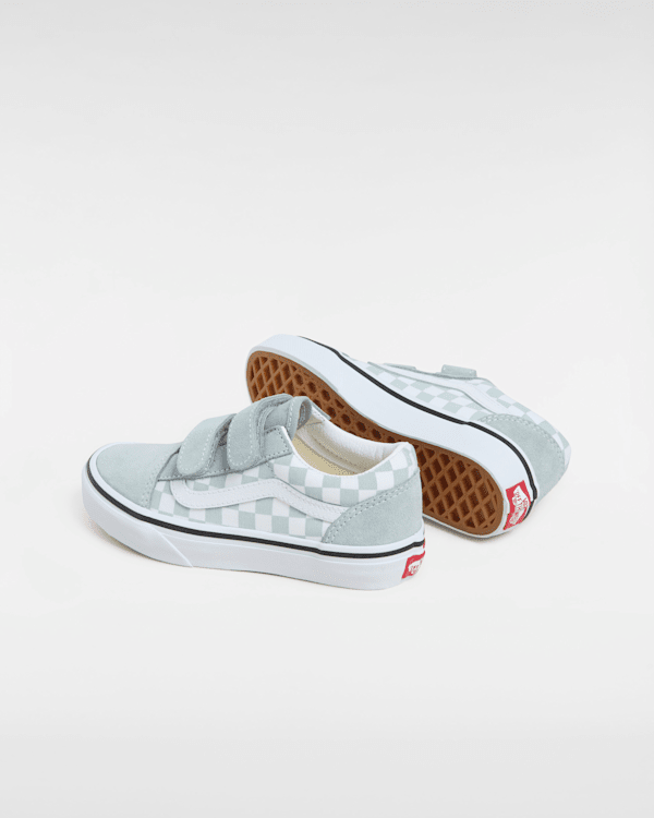 Everyday wear, original Icon Strap Closures Create a Friendlier Fit on this Iconic Sidestripe Shoe in Not-Quite-Adult SizingThe Youth Old Skool V Checkerboard reimagines our iconic Sidestripe shoe by swapping traditional laces for double hook-and-loop closures.