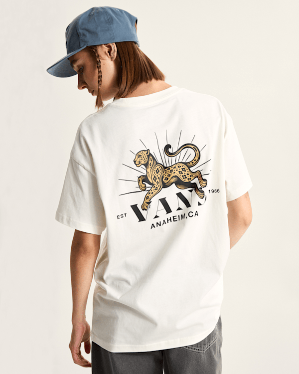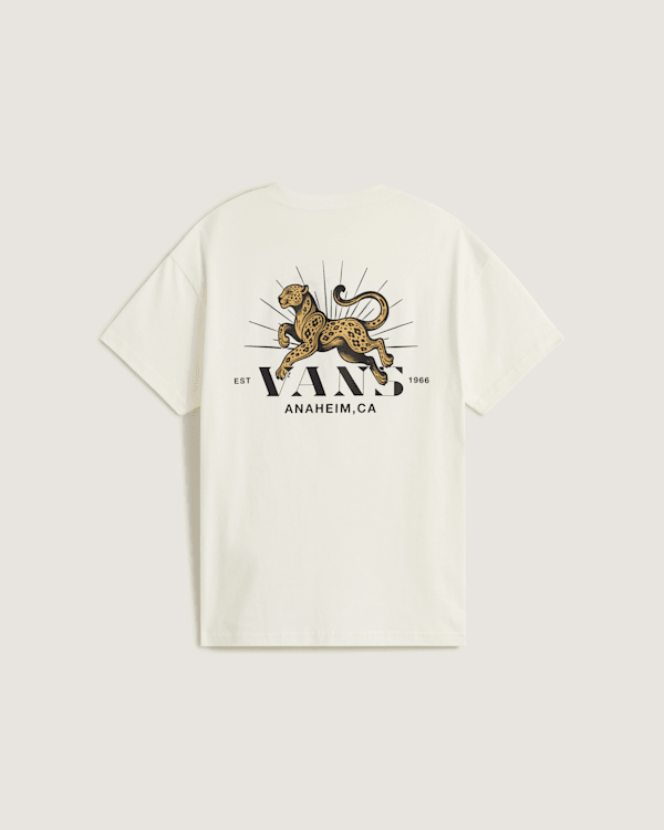 This classic crew neck tee takes your casual rotation to the next level, featuring an XL leopard logo graphic on the back and matching Vans lettering on the left chest