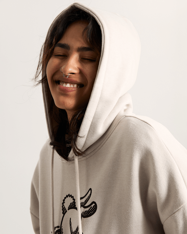 Stay cosy in style with the Down The Rabbit Hole Hoodie, a cotton fleece hooded sweatshirt with a front pouch pocket, drawstring hood, and an ink-inspired bunny graphic with cheeky lettering on the centre front