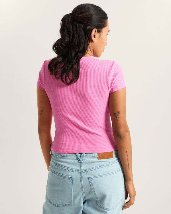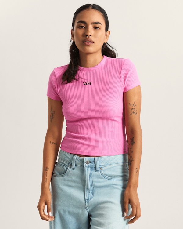 Made with a soft, comfortable feel and finished with a clean Vans logo on the front, this ribbed stretch tee is all about timeless style that works wherever the day takes you