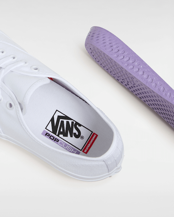 Along with a new sidewall finish, POPCUSH™ sockliners for superior cushioning and impact protection, and a sleek checkerboard flag, the Skate Authentic gives you the iconic look you want—with all the performance benefits that real skaters demand.