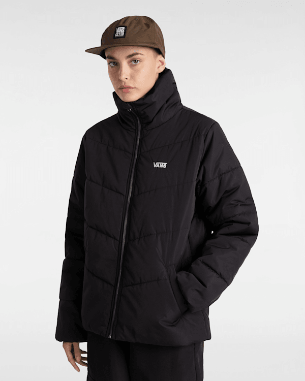 Offering protection from the elements with classic Vans styling, the Foundry Puffer MTE- 1 Jacket features Durable Water Repellent coating, DuPont™ body fill, a high neck, and left chest logo embroidery.