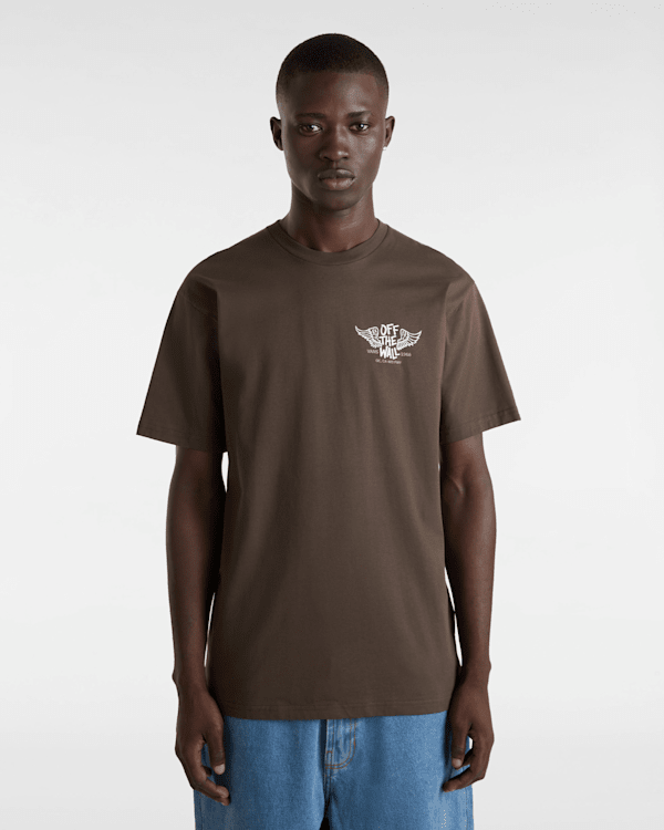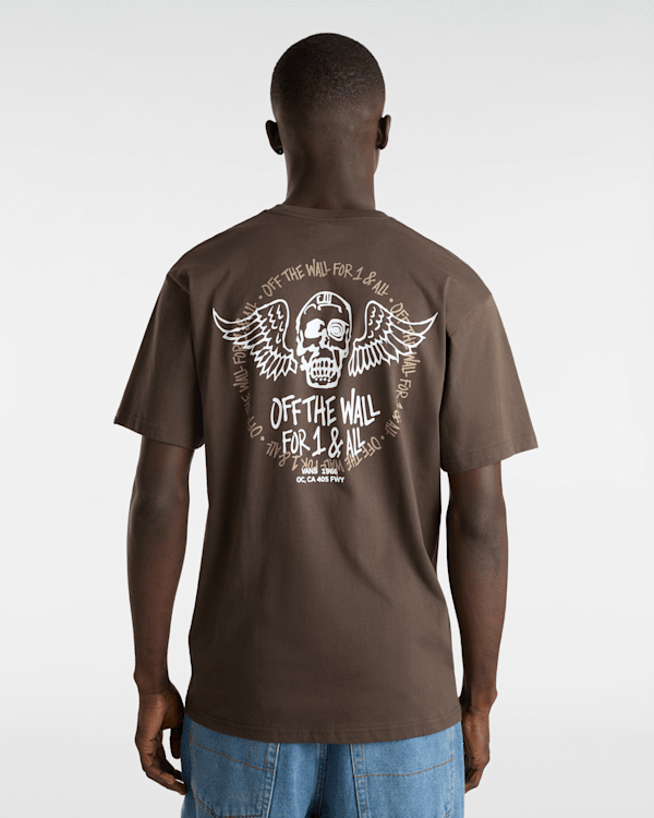 The Club House T-Shirt is a classic fit short sleeve T-shirt made of breathable cotton with a subtle winged logo screenprinted on the front, and a larger matching flying skull printed boldly on the back.