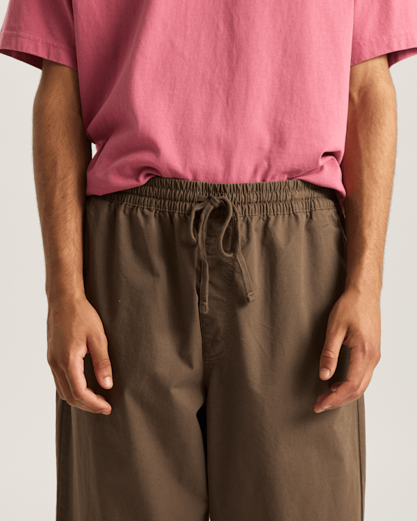 Built around an easy pull-on elastic waist for all-day, everyday wear, the Range Baggy Tapered Elastic Waist Trouser features a long rise at the waist that stays baggy through the hip and thigh, ending in a tapered leg.
