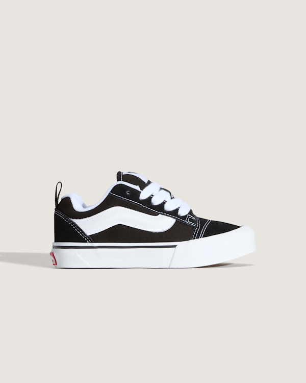 With their in-your-face profile and dramatic style details, the Kids Knu Skool plays off of the original Old Skool while blending an icon of the past with today’s trends