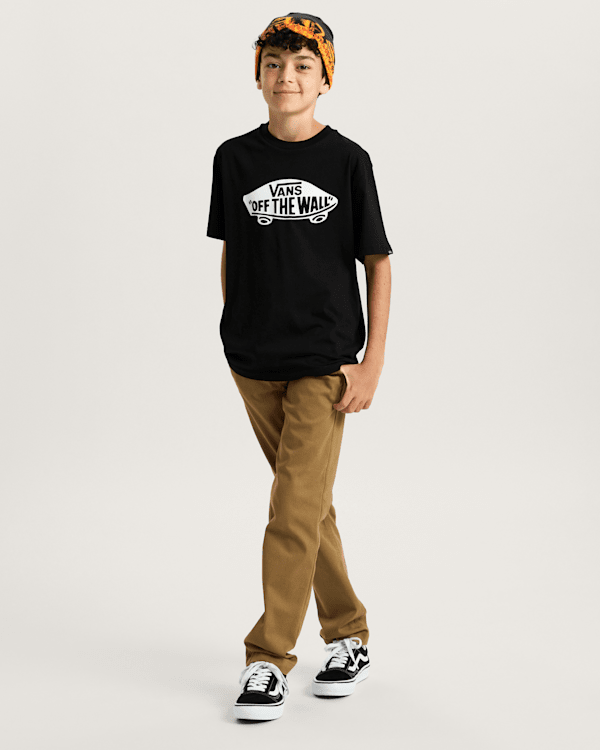 The Vans Kids Style 76 T-Shirt has a crew neck, short sleeves and the Vans Off the Wall skateboard logo on the front