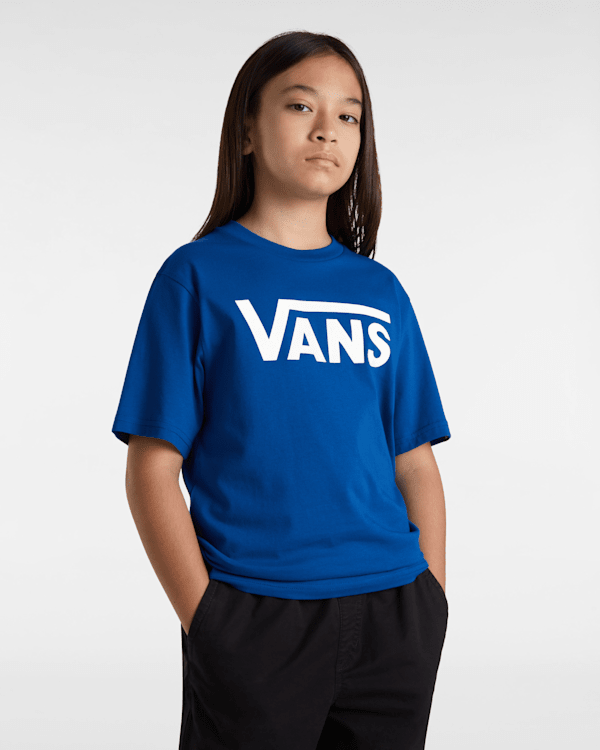 The Kids Vans Classic T-Shirt is made with 100% carded ringspun cotton and features our signature logo on the front