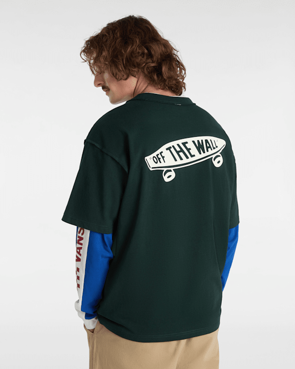 100% cotton twill Wide rib crew neck t-shirt featuring front tee text Screen printed skateboard logo Interior woven labe
