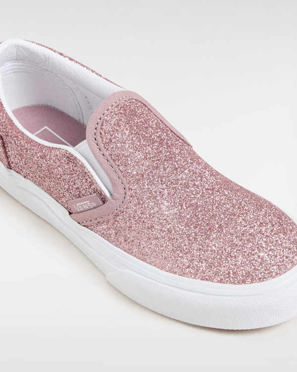 The Youth Classic Slip-On Glitter Shoe honors the heritage of this iconic Vans silhouette with a splash of modern sensibilities