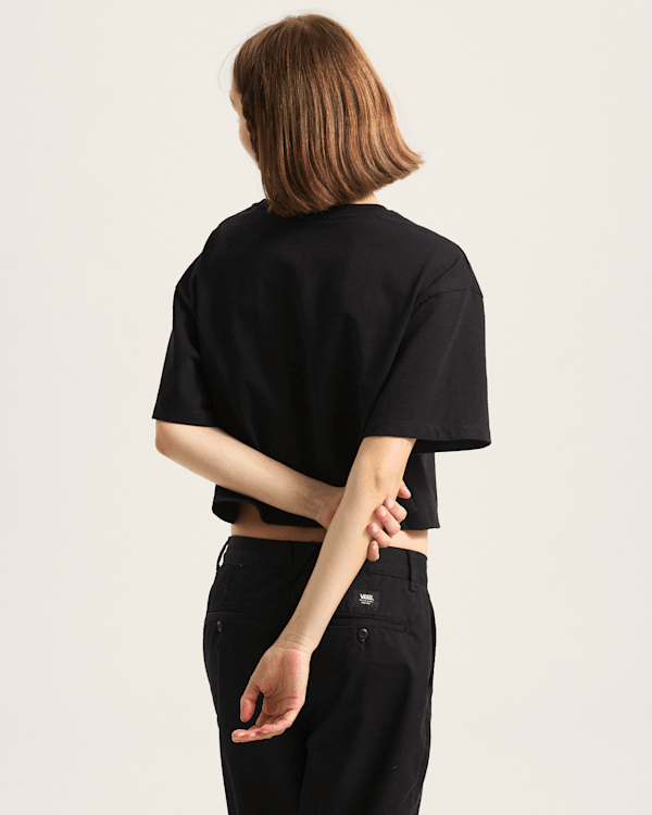 Embroidery With this cropped design we revisit the classic Vans tee for an edgier, more modern silhouette.