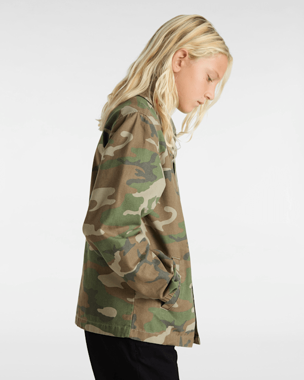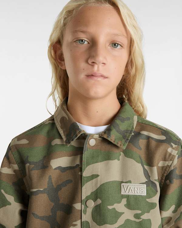 Along with a classic embroidered Vans® logo on the chest, this easy-wearing coaches jacket has a snap button closure, welt hand pockets, and a drawstring at the hem for a customizable fit