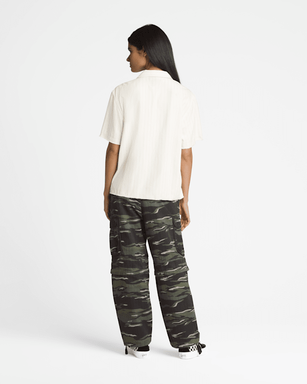 Cargo pockets Detachable lower leg converts to a long short Patch pockets Allover camo print Interior woven labe