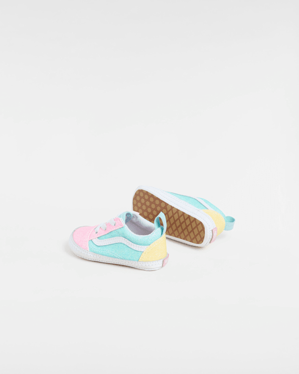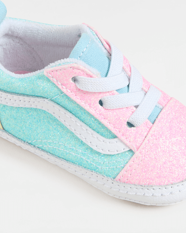 Redesigned for a perfect fit in the style of the original Old Skool, the Old Skool Crib has been constructed especially for our littlest ones with elastic laces and heel pulls for easy on-and-off access.