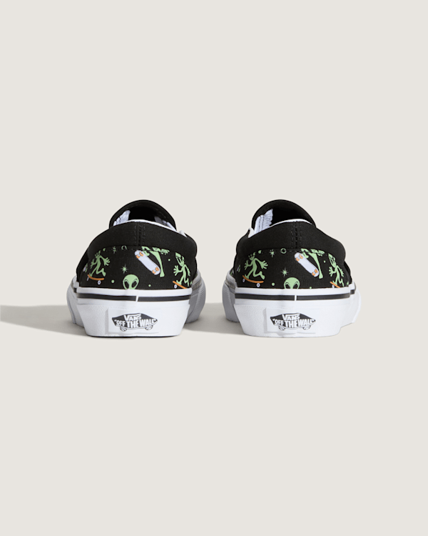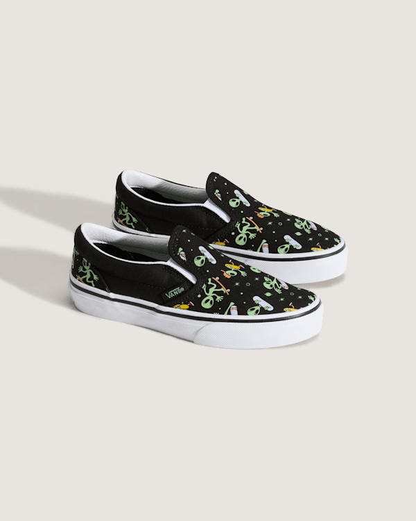 Lifestyle, Original Icon, Easy-On The Classic Slip-On gets an intergalactic twist with an allover alien print that glows in the dark.