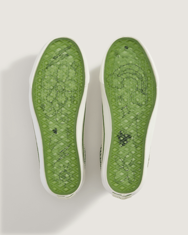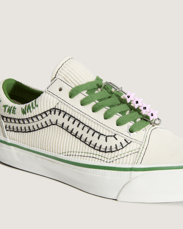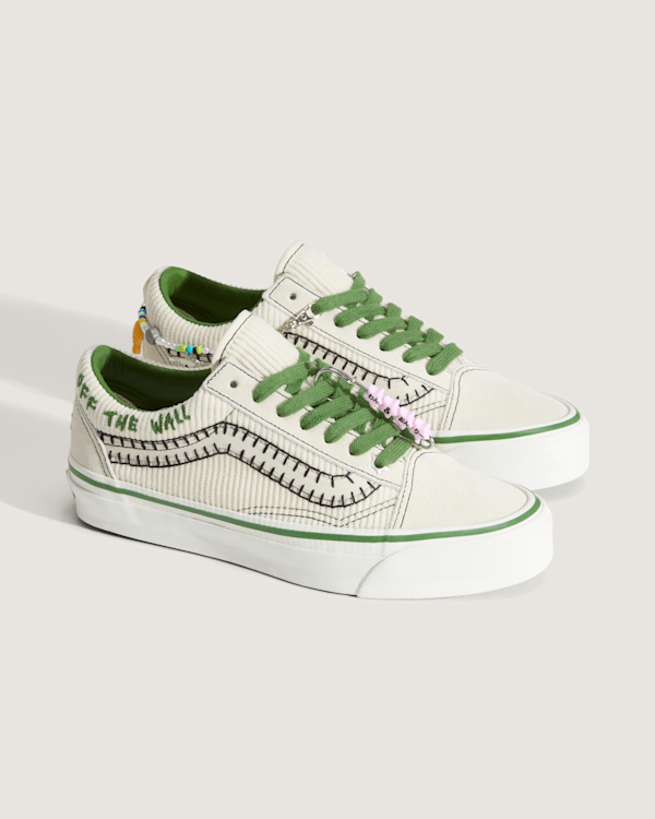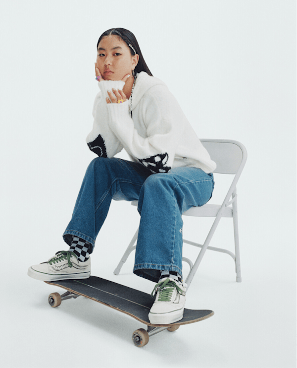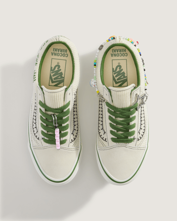 Cocona’s energetic Premium Old Skool reflects these off-board passions with a removable friendship bracelet and charm inspired by her Japanese heritage, along with her custom artwork on the translucent outsole