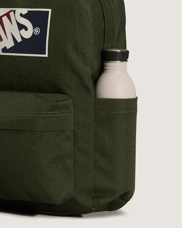 Everyday, 18 liters A classic backpack with plenty of Vans DNA, the Old Skool Grom Backpack has a two-pocket design featuring a slip-in organiser to keep your important items neatly arranged and a side water bottle pocket for easy hydration