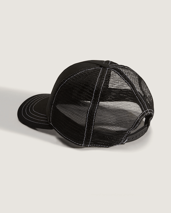A merrow-edged Vans patch anchors the look, while the mesh back and adjustable snap keep it cool and dialed in