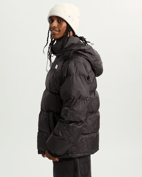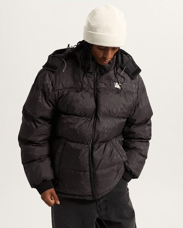 Offering protection from the elements with classic Vans styling, the Bridgewood Reversible Puffer Jacket features reversible styling with an allover puffer design on one side and a solid design on the opposite.