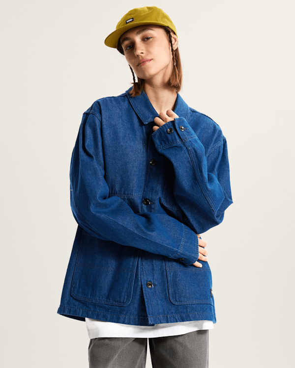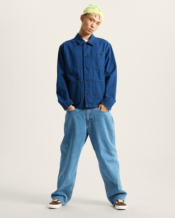 Laid back styling and classic workwear details come together in our Drill Chore Denim Jacket, a midweight cotton denim jacket with a boxy fit and tons of pockets for stashing your essentials.