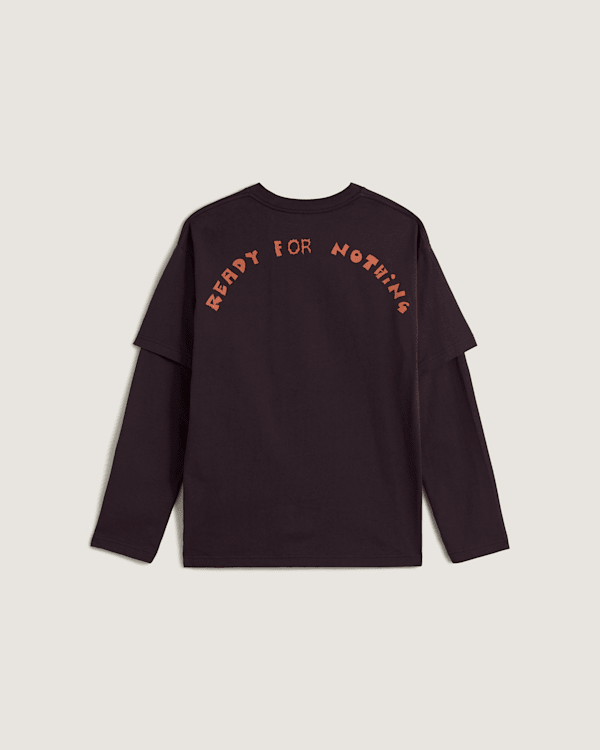 This vintage-inspired tee features large "Ready For Nothing" lettering on the back and a flipped Vans logo graphic on the left chest