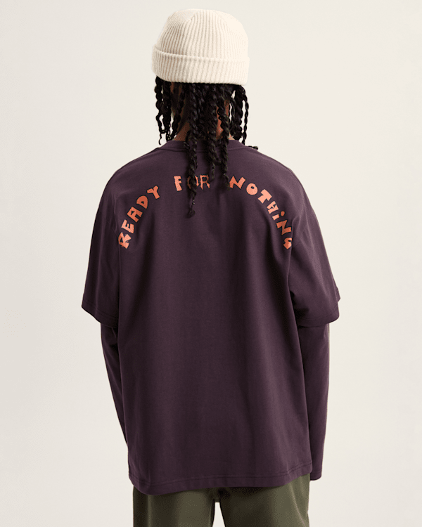 The For Nothing Twofer T-Shirt packs plenty of attitude with its chunky, layered design.