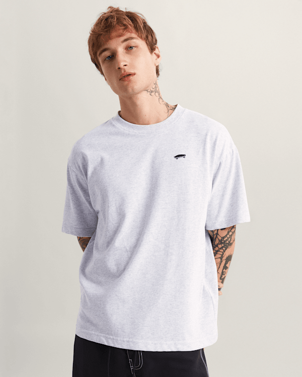 The design features a crew neck, short sleeves and an embroidered skateboard logo on the left chest, a subtle nod to the skating heritage that has defined our history as a brand