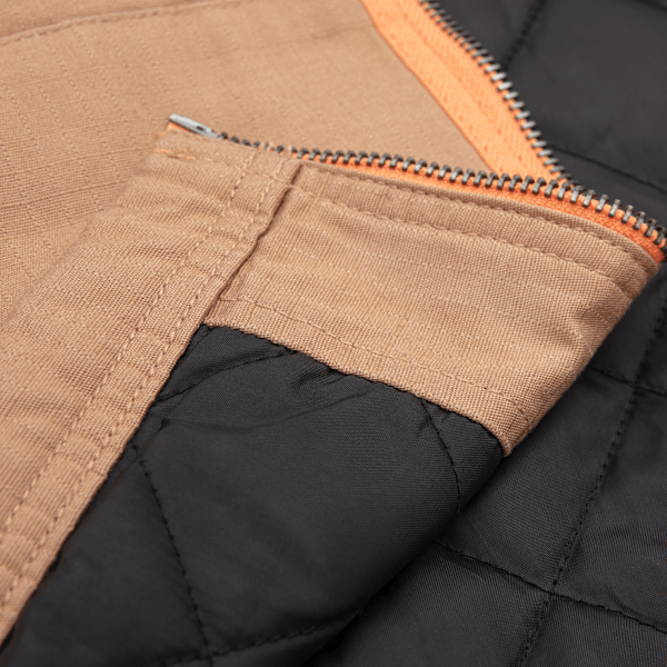 Lizzie Armanto signature collection 100% cotton shell, 100% polyester lining and fill Ripstop vest Exposed zipper tape Kangaroo pockets Front and back embroidery detail