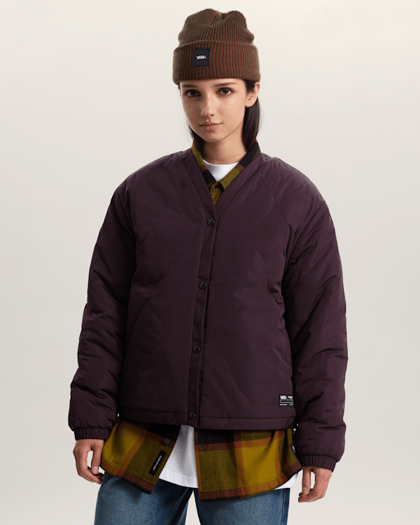 Made with a soft sherpa check-meets-cheetah outside and a smooth quilted inside, this cosy button-down design offers endless styling options