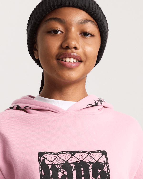 Step up their look with the Kids Chain Pullover Hoodie, designed with bold chain graphics across the hood and front, plus the iconic Vans logo on the chest.