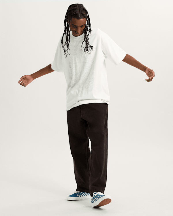 With an overdye wash for a comfortably worn and vintage look, it's finished with screen print artwork for long-lasting design of a Vans logo on the chest