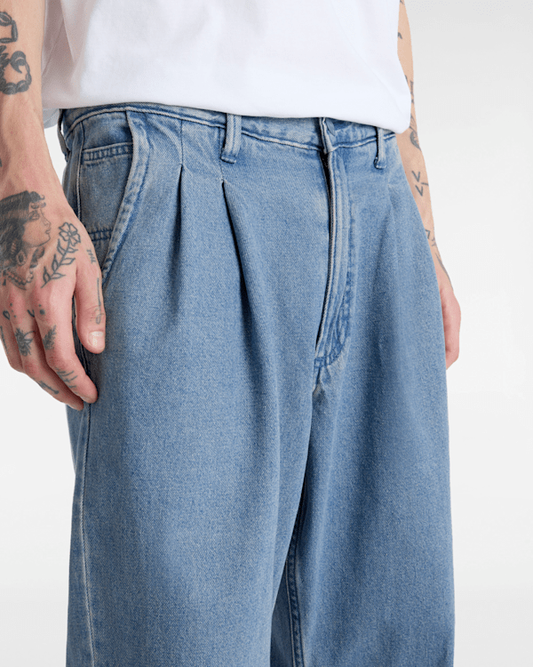 Die Authentic Chino Loose Tapered Pleated Denim Hose ist eine vielseitige Chinohose, die Komfort und Funktionalität bietet.