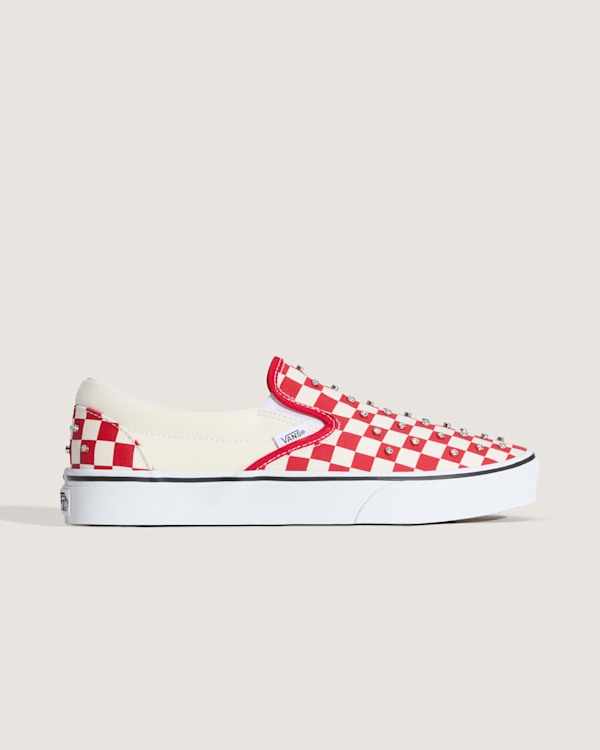 Dieser klassische Slip-On aus robustem Canvas ist eine coole Variante unseres legendären Checkerboard-Styles, komplett mit Strassnieten für einen ausgefallenen, individuellen Look.