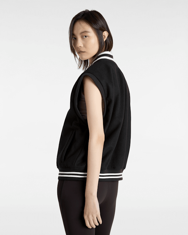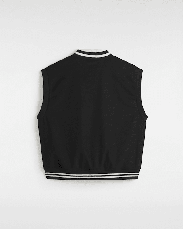 El chaleco Piper Stadium es una prenda cálida de lana con forro de estilo informal que presenta con un ribete en jacquard.