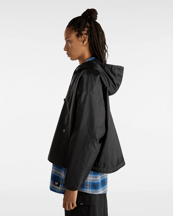 Dotada de un diseño corto, holgado y de sisas caídas, esta chaqueta es, además, lo suficientemente espaciosa como para poder llevar unas cuantas capas extra debajo.
